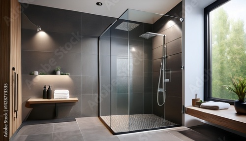 bathroom, interior, home, design, luxury, bathe, house, sink, mirror, shower, room, architecture, tile, contemporary, indoor, glasses, bathtub, floor, privies, apartment, door, nobody, new, furniture, kitchen
