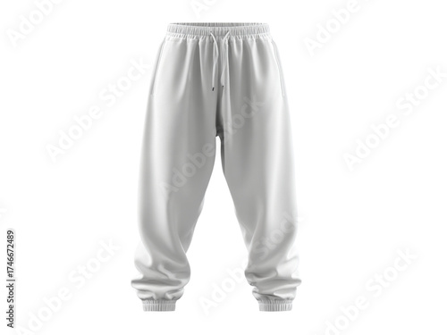 white, apparel, clothing, fashion, style, design, template, blank, casual attire, comfortable, activewear, activewear, trousers, pant, garment, textile, fabric, cotton, polyester, elastic, waistband, drawstring, cuff, trendy, modern, minimalist, clothes rack, unisex, training, fitness, gym, athletic, sport, wear, elegance, outfit, fashion design, product, studio, isolated, front view, presentation, advertising