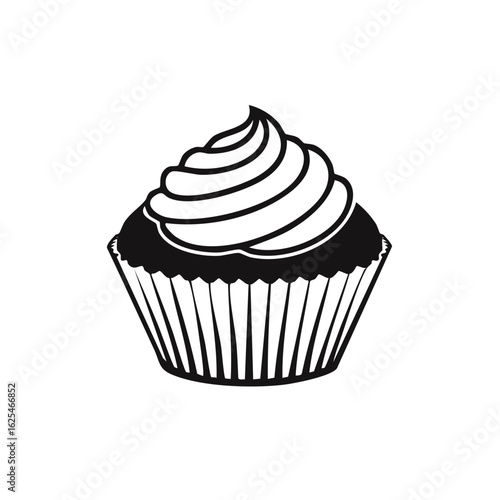 cupcake, dessert, sweet, food, baking, frosting, swirl, icing, cake, vanilla, chocolate, pastry, treat, confection, delicious, celebration, party, cafes, bakery, graphic, icon, illustration, silhouette, simple, clean, line art, drawing, black-and-white, mono, minimal, design element, sugar, baked goods, sweet food, tasty