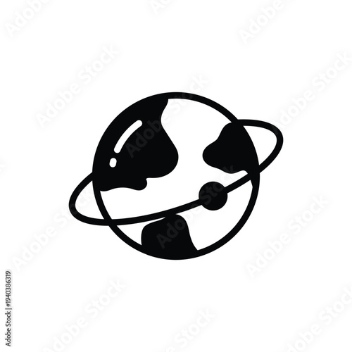stylised, black, white, icon, earth, ring, around, black-and-white, travel, concept, design, connection, international, map, globe, orbit, space, earth, planet, outline, navigation, illustration, communication