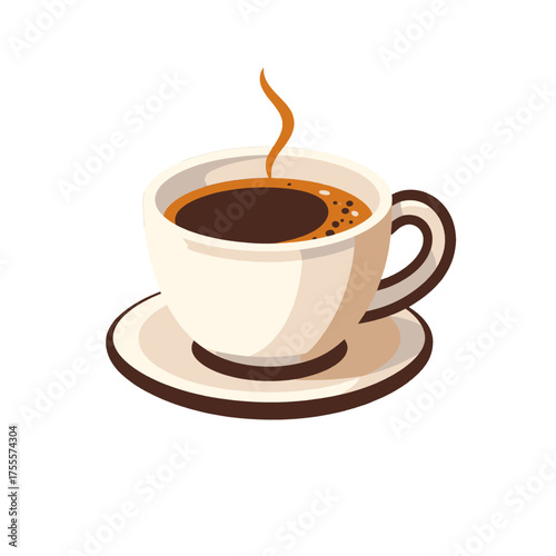Stylized Coffee Cup Icon with Steaming Brew on Saucer Isolated Against White Background Offering Simple Yet Comforting Visual