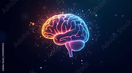 Stylized Digital Brain Illustration with Futuristic Neural Connections and Vibrant Circuit Patterns