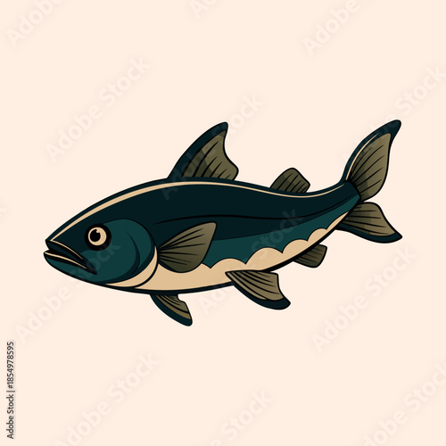 Stylized Fish Illustration with Deep Blue and Beige Coloring on Beige Background