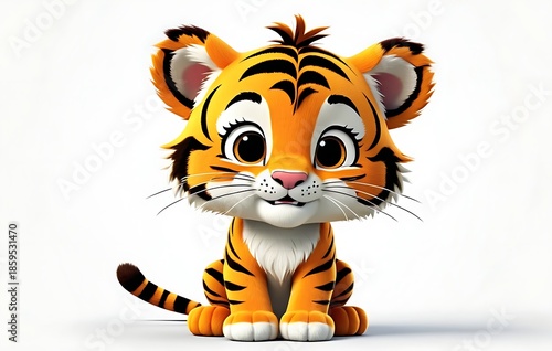 baby animal, tiger, animal, cartoon, cute, adorable, playful, young, orange, black, stripes, fluffy, furry, whisker, innocent, friendly, happy, joyful, sweet, gentle, animated, illustration, digital artwork, character, wildlife, savanna, jungle, pounce, spirit, big, personality, eye, gaze, soft, fur, vibrant, colours, detailed, texture, stylised, pattern