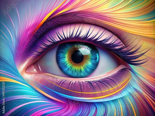 Stylized Graphic Of A Human Eye With Flowing, Abstract Lines Representing Iris, Pupil, And Lashes