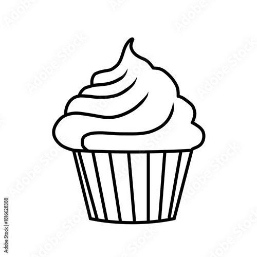 Stylized line art cupcake with clean swirl frosting. Suitable for stickers, bakery branding, menu elements, and minimalist dessert graphics.