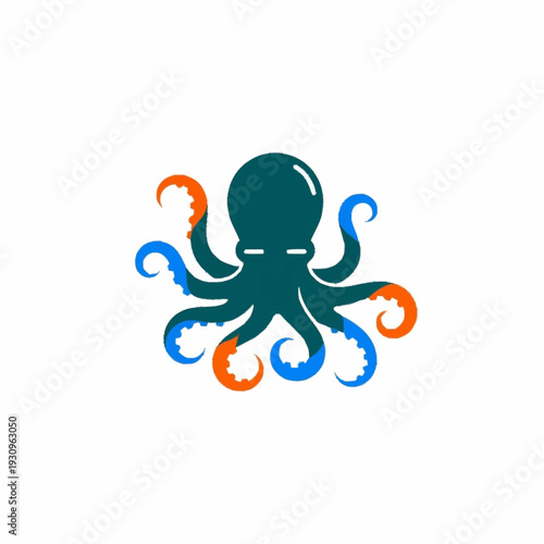 Stylized Octopus Illustration with Blue and Orange Tentacles.