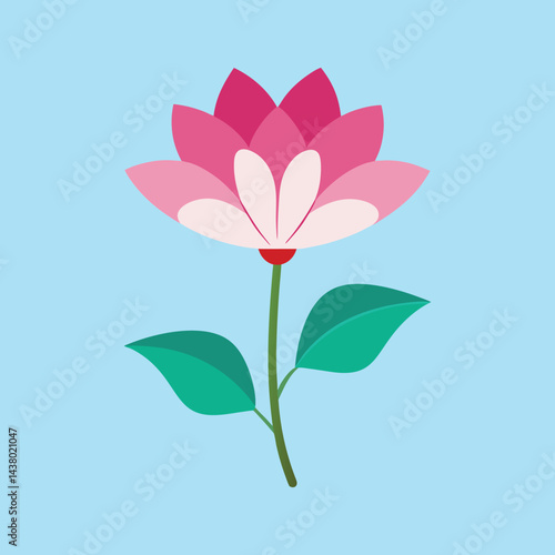 Stylized Pink Lotus Flower with Green Leaves on a Light Blue Background