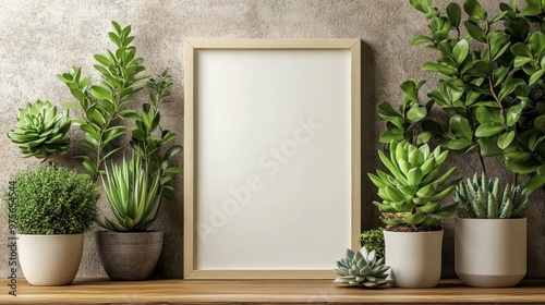 Succulent Plants and Blank Wooden Frame on Table Generative AI