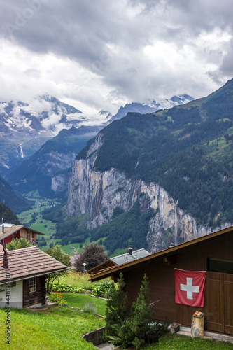 summer in Wengen village in Lauterbrunnen Valley, Switzerland