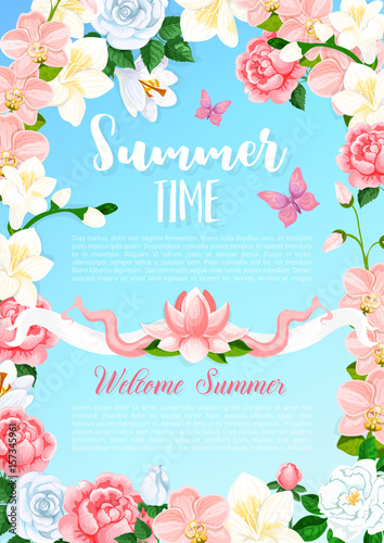 Summer time flowers greeting vector poster