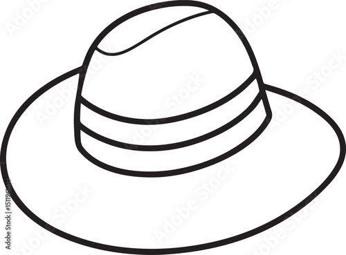 sun hat line art, black outline, vector and illustration, coloring book page line art drawing
