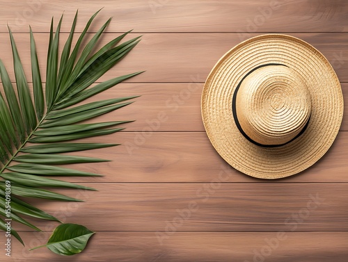 hat, straw, summer, sun, beach, vacation, tropical, palm, leaf, wood, background, texture, woven, apparel, accessory, fashion, sunlight, warmth, holiday, travel, relaxation, nature, greenery, design, element, overhead, image, style, simple
