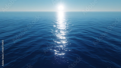 ocean, sea, water, blue, sky, clear, calm, serene, peaceful, tranquil, horizon, sun, sunlight, glistering, sparkle, light, nature, landscape, scenic, huge, open, surface, wave, gentle, ripple, summer, day, bright, deep, view, seascape