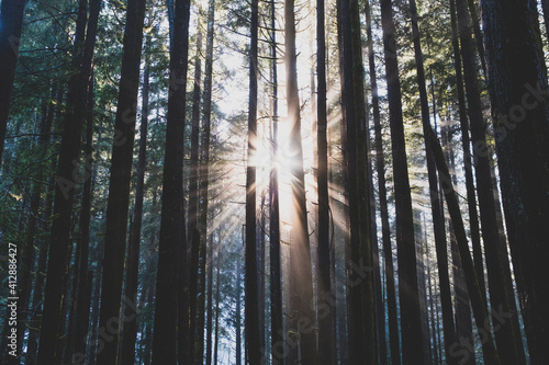 nobody, dense, us, lens flare, tree trunk, timberland, forest, rainforest, shadow, sunlight, outdoors, day, nature