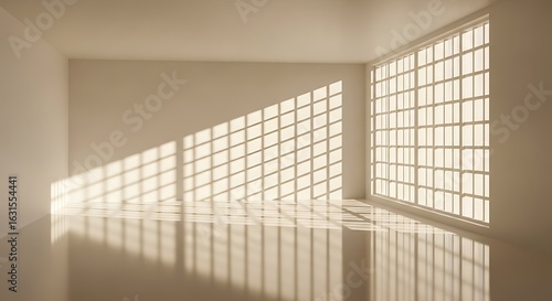Sunlight Streaming Through Large Window Illuminating Empty Room with Polished Floor Interior Design Architecture and Minimalist Aesthetic