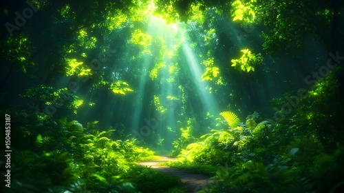 sunlight, jungle, path, lush, green, tree, forest, nature, ray, pathway, trail, dense, vegetation, plant, tropical, emerald, growth, exuberant, vibrant, natural, radiant, bright, pathway, underbrush, foliage, deep, shadowy, mystery, serenity, tranquil, calm, peaceful, journey, exploration, adventure, light, beam