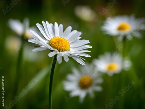 Sunlit daisies bask under soft light in detailed close-up capturing pure realism across meadow backdrop