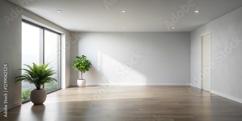 Sunlit Empty Room with Plants and Hardwood Floor, Ideal for Modern Interior Design and Home Staging
