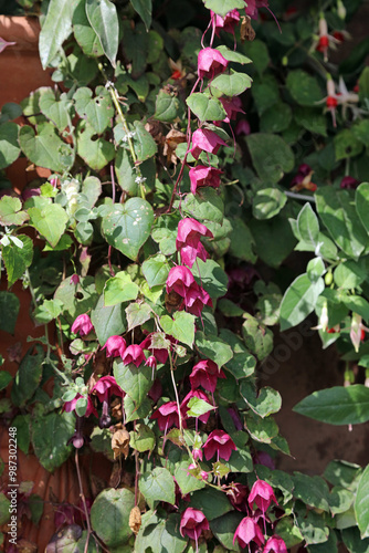 Sunlit Purple Bell Vine blooms, Powys Wales