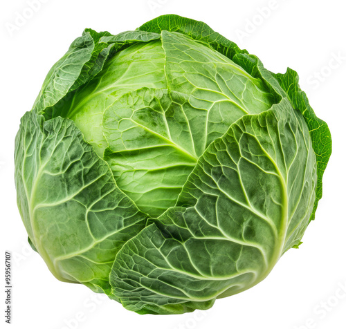 Sunlit vibrant green cabbage leaves, cut out - stock png.