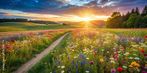 meadow, wildflower, path, spring, landscape, flower, nature, field, summer, rural, countryside, blossom, floral, beauty, scenic, photo, image, background, wallpaper, botany, plant, vibrant, colourful, sunlight, green, idylli, peaceful, tranquil, serene, travel, journey, walking, adventure, exploration, blooming, wild