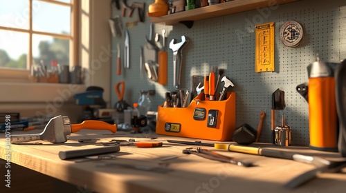tool, workshop, workbench, window, sunlight, hammer, wrench, screwdriver, plier, saw, nail, screw, metal, wood, orange, daylight, work, repair, craft, bricolage, home, improvement, building, construction, hand tool, hardware, equipment, mechanic, carpenter, handyman, project, fix, create, design, hobby, skill, space, orderly, organised, room, light, shadow, surface, background, interior, vintage