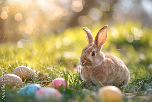 easter, rabbit, easter bunny, egg, grass, spring, sunlight, painted, festive, pastel, bright, cheerful, flora, bokeh, holiday, decoration, green, yellow, pink, blue, fluffy, rabbit, nature, celebration, vibrant, colourful, season, soft, cute, warm, glow, sunrise, meadow, daisy, foliage, morning, tradition, moody, scene, happy, art, creative, picturesque, landscape