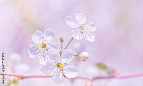 Sunny spring day. Cherry blossoms. Beautiful flowers, close-up