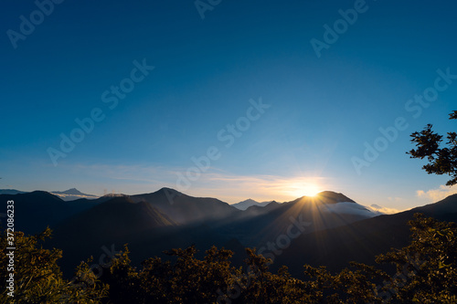 sunrise in the humid forest of crater