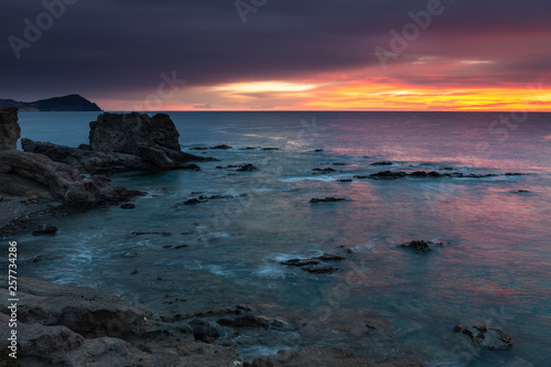 Sunrise on the coast of Escullos. Natural Park Cabo de Gata. Spain.