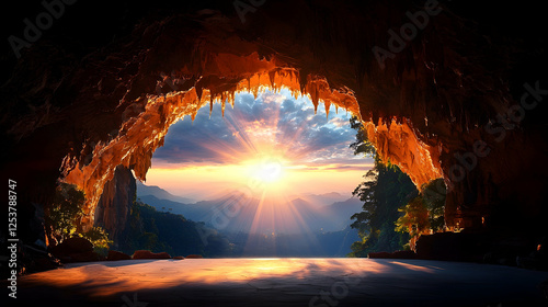 sunrise, cave, mountain, landscape, vista, nature, dawn, sun, scenic, view, rock, sky, light, travel, adventure, exploration, beautiful, amazing, photo, photo, image, background, scenery, panorama, wilderness, serenity, peace, calm, calmness, majestic, dramatic, spectacular, breathtaking, gorgeous, stunning, impressive, marvellously, incredible, marvellous