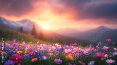 Sunset blossoms in a mountain landscape nature flowers tranquil environment scenic viewpoint serene concept