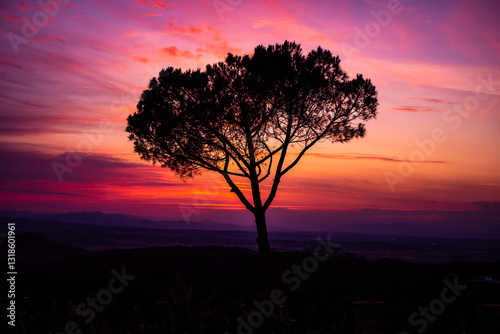 sunset, tree, heaven, silhouette, landscape, sun, nature, sunrise, cloud, orange, red, evening, horizon, blue, yellow, light, evening, dawn, sunset, spain
