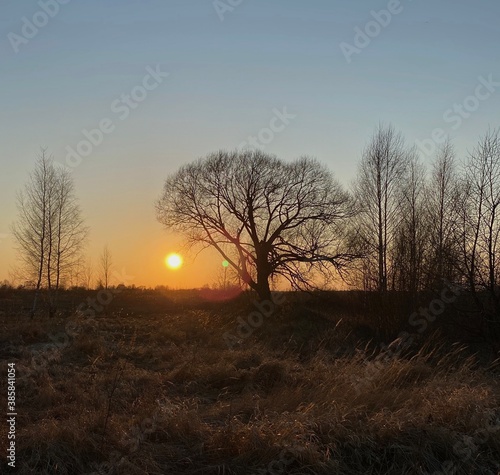 tree, landscape, sky, nature, sunset, tree, sunrise, field, morning, fog, sun, grass, winter, autumn, mist, silhouette, rural, spring, forest, light, cloud, blue, meadow, bare, misty