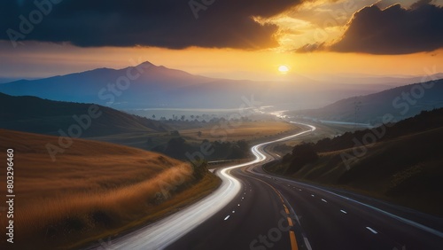 road, highway, sky, landscape, sunset, travel, asphalt, nature, horizon, way, car, cloud, cloud, sun, rural, speed, country, journey, empty, drive, motion, long, transportation, view, grass