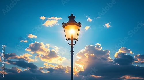 lamp-post, street light, sunset, cloud, sky, dusk, twilight, evening, light, illumination, gold, warm, glow, bright, hope, serenity, peaceful, calm, romantic, nostalgic, vintage, antique, old, classic, urban, city, background, texture, image, photograph, design, element, illustration, summer, spring, autumn, weather, nature, atmosphere, beauty, scenic, picturesque, travel, landscape