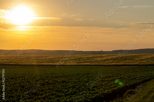 sunset, agricultural, field, summer, plant, during, green, beautiful, over, sky, nature, agriculture, sun, rural, farm, field, shadow, cereal, light, scene, grass, meadow, sunlight, cloud, plant