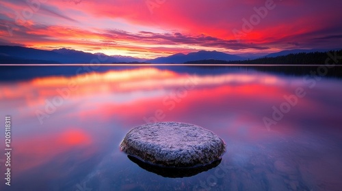 serene, sunset, or, sunrise, reflections, single, flat, stone, partially, submerged, water, intense, orange, dramatic, sky, symmetry, visual, calmness, harmony, meditation, quiet, ripple, peace, mist, movement, perspective, atmosphere, tranquil, balance, glow, fog, warm, watercolor, effect, stack, surface, still, emerging, creating, scenic, dreamlike, light, arrangement, element, cairn, beauty, colours, gently, nature