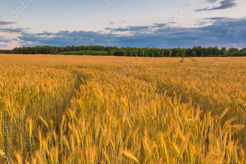 Sunset over cereal field with grown up ears