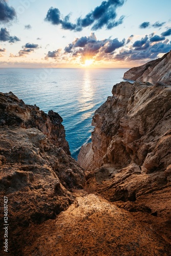 sunset, ocean, rocky, vibrant, sky, sea, landscape, nature, scenic, horizon, coastal, dramatic, sunlight, cloud, tranquil, serene, beautiful, travel, tour tourism, picturesque, seascape, evening, dusk, twilight, geology, rock formation, water, natural