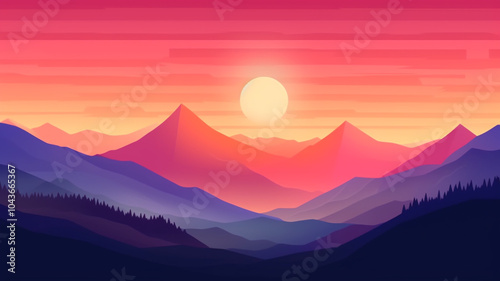 Sunset Over Silhouetted Trees and Mountains in a Grassy Field beautiful sunset illuminating the desert dunes in the evening sunset gradient ( sunset gradient background with hues of