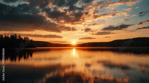 sunset, lake, sky, cloud, orange, water, gold, evening, nature, horizon, forest, silhouette, tree, landscape, sun, calm, peaceful, serene, beautiful, calmness, tranquil, vibrant, dramatic, picturesque, idylli, outdoors, scenic, twilight, golden hour