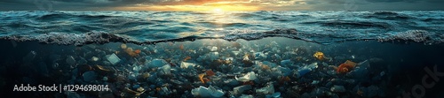 sunset, ocean, plastic, waste, pollution, debris, water, floating, surface, toxic, environment, contamination, coastline, marin, ecosystem, ecological, denied, aquatic, environmental, nature, shoreline, storm, habitat, biodiversity, sea, wildlife, cleanup, health, sustainability