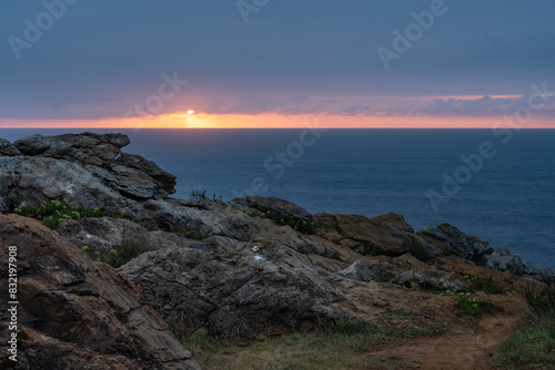 sunset, sea, dusk, cloud, nature, sky, horizon, purple, water, summer, dawn, horizontal, seascape, sunlight, sun, beach, travel, colours, no people, photo, sunrise, color image, night, ocean, blue, outdoors, landscape, idylli, calmness, twilight, coastline, dramatic sky, evening, rock, travel destination, beauty, dark, copy space, coast, environment