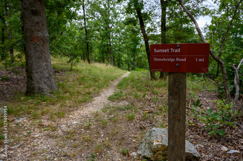 arkansas, bright, environment, foliage, footpath, forest, green, hiking, light, mountain, national park, nature, orange, park, path, pathway, plant, post, signs, summer, sunset, trail, tree, wood, blaze, hot spring, information, scenery, tree, vibrant