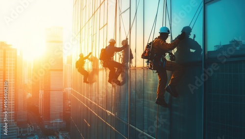 Sunset Window Washers: High-Rise Cleaning Crew at Golden Hour