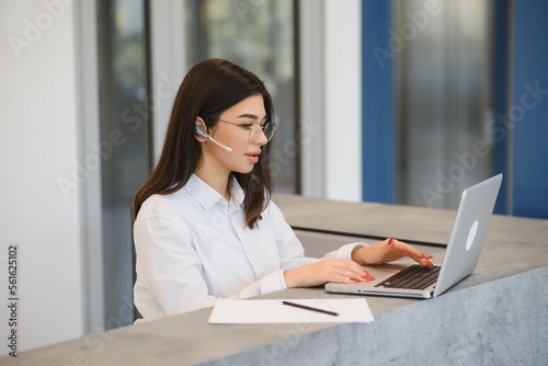 Support phone operator in headset at workplace