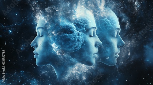 Surreal Cosmic of Human Faces in Celestial Space Art