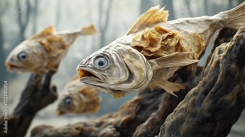 fish, dried, surreal, landscape, still, life, nature, food, seafood, animal, wildlife, texture, abstract, visual, creative, design, three-dimensional, digital, art, render, fantasy, environment, aquatic, underwater, organic, vintage, rustic, weathered, monochrome